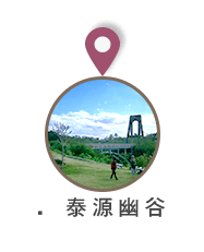東海岸唯一的封閉式盆地地形的泰源幽谷,峽谷內幽美景色,常讓遊客留連忘返外,休閒農場、觀光果園等休閒設施,不但能讓您一邊欣賞美景,也可讓您一邊享受採果樂趣。